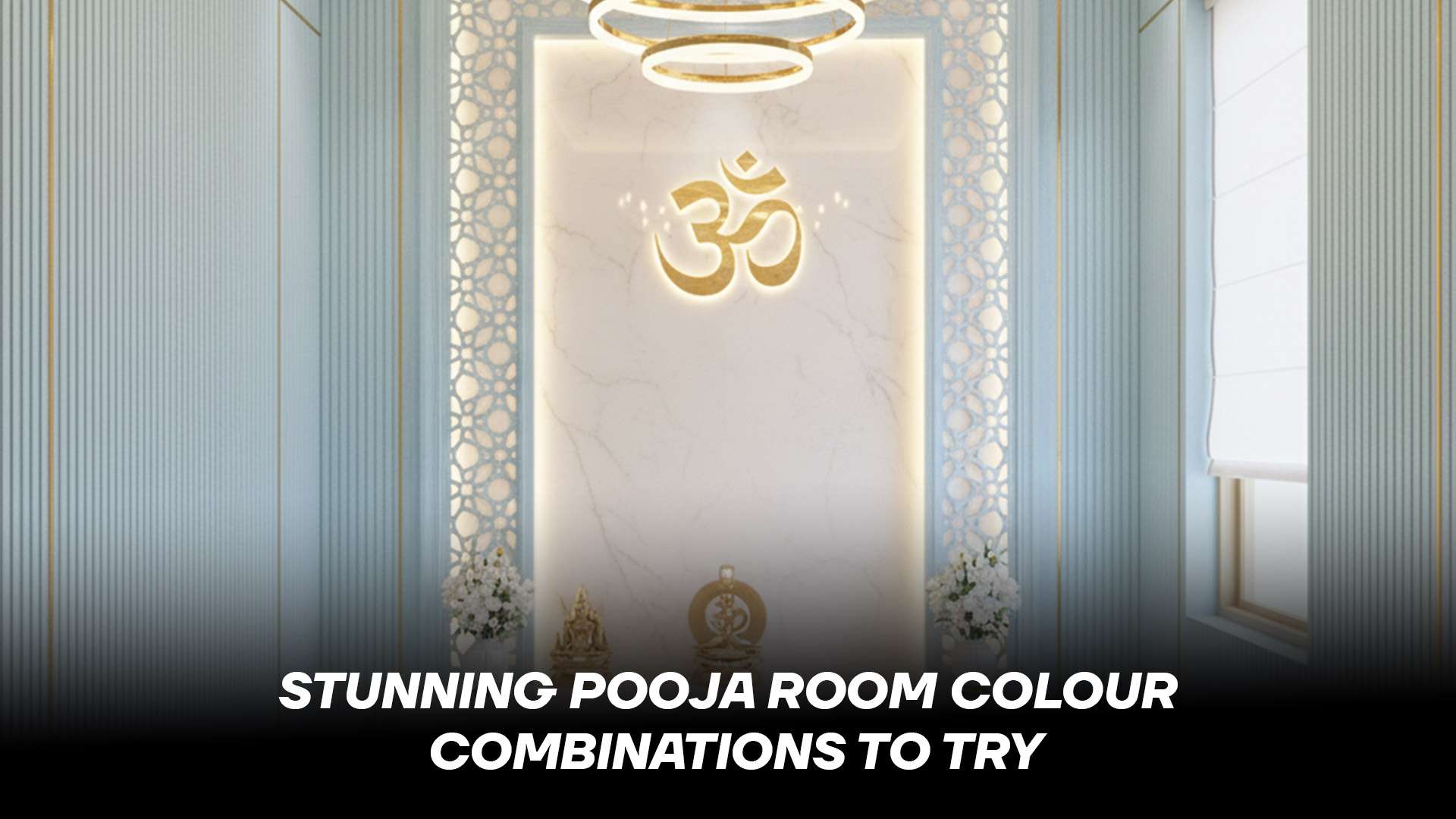 The most auspicious pooja room colour combinations include white and gold, yellow and green, and red and white. White represents purity, gold signifies prosperity, and green encourages harmony. These colours align with Vastu principles, promoting a positive and calming energy in your sacred space.